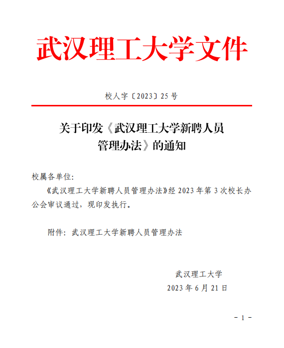 武汉理工大学新聘人员管理办法